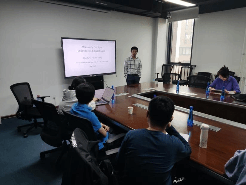 2023年5月19日14:00,香港中文大学院长聘副教授高超禹应新葡萄8883官网AMG官网邀请,开展主题为“Monopsony Employer under Repeated Moral Hazard”的讲座,高超禹老师受到了老师和同学们的热烈欢迎!新葡萄8883官网AMG官网黄乃静副教授主持讲座,尹振东教授,龚雅娴老师参加了讲座。