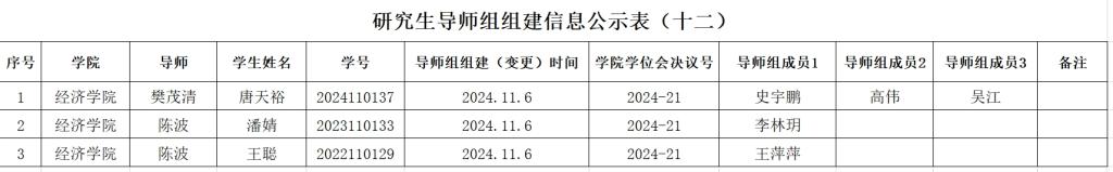 二、研究生导师组原则上应在该生学位论文开题前组建,组建后不得随意变更。学院导师组详细名单和具体信息附后,以供相互监督。研究生导师组的日常管理由研究生导师和培养单位共同负责,研究生导师作为研究生培养第一责任人的职责不变。