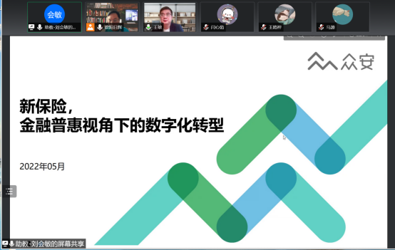 2022年5月23日上午10点,众安在线财产保险股份有限公司(以下简称“众安保险”)常务副总经理兼董事会秘书王敏应邀加入新葡萄8883官网AMG官网“数字金融理论与实务”线上课堂,以“新保险——金融普惠视角下的数字化转型”为题,为同学们带来了一场精彩纷呈的讲座。