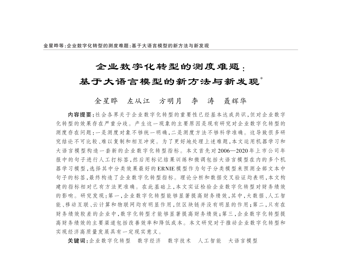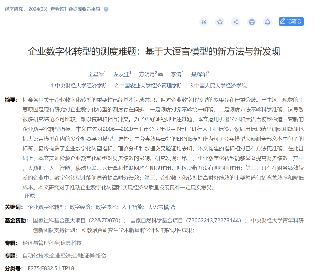 学术视点 | 新葡萄官网金星晔老师、李涛老师和左从江博士生与合作者的论文《企业数字化转型的测度难题:基于大语言模型的新方法与新发现》在《经济研究》刊发