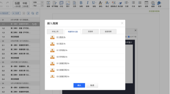 推荐大家先把视频上传到云盘,再从云盘插入视频到课程,这样上传速度比较快。