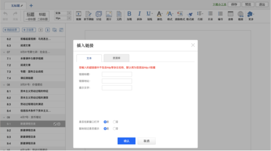 方法:先上传论文至云盘,再从云盘中插入论文资料到课程。