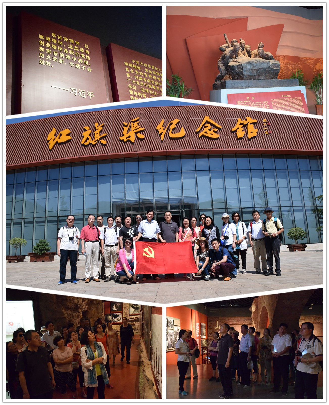 6月25日下午,新葡萄官网教职工党员一行31人抵达位于河南省林州市北部的红旗渠纪念馆,了解了人工天河——红旗渠的开凿历程。穿过星落棋布的浅浅方塘,拾百余级石阶而上,便是宛若红色飘带的红旗渠新馆。馆内2000余件珍贵文物完整再现了红旗渠修筑当年的真情实景,跟随纪念馆工作人员的步伐,时光随渠水倒转回上世纪60年代,置身其中,党员切身感受到了林县“水贵如命”的缺水现状,看到了吃水难、用水难对林县发展的掣肘,从根源上了解了修建红旗渠的历史与时代背景。榔头、草帽、铁钎、绳索,简陋的工具与艰苦的条件形成了鲜明对比;拦河填沙、悬崖除险、开山架渠,一张张泛黄的黑白照片再现了红旗渠修建时的恢弘壮景;动员令、群英像、献身碑,81名英雄儿女的鲜血与10万林县人民的汗水撑起了红旗渠的脊梁,也触动了每位党员的心。历时10个春秋,林县人逢山凿洞,遇沟架桥,劈开太行山,引来漳河水,建成了总长1500公里的引漳入林工程——中国水长城,也塑造了“自力更生、艰苦创业、团结协作、无私奉献”的红旗渠精神。“焦裕禄精神、红旗渠精神,这些革命创业精神是我们党性和宗旨的集中表现,历久弥新,永久不会过时。”——驻足习近平总书记的题词前,在场每位党员对红旗渠精神、对“两学一做”有了更深入的认知与了解。有党员表示,红旗渠深刻诠释了“实干兴邦”的箴言,它把中国道路、中国力量和中国精神,镌刻在了这座太行丰碑上。也有党员感叹:以“凿洞能手”王师存为代表的一众优秀党员在红旗渠修建中真正发挥了先锋引领作用,是修渠大军的尖刀利刃,作为教师党员,我们应该学习他们不畏艰险、奋勇争先的革命斗争精神。
