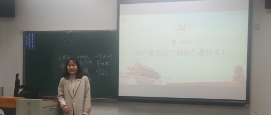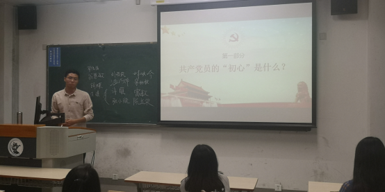 2019年10月18日19:30,新葡萄官网2019级硕士生第一党支部于学院楼4号楼110室开展了“书记讲党课”支部学习活动。本次活动以“不忘初心、牢记使命”为主题,一共分为两个环节,第一环节由党支部书记陈兰荣向党员们讲授“不忘初心、牢记使命”的主题党课,第二环节由每位党员同志分享自己对于党员“初心”的理解。