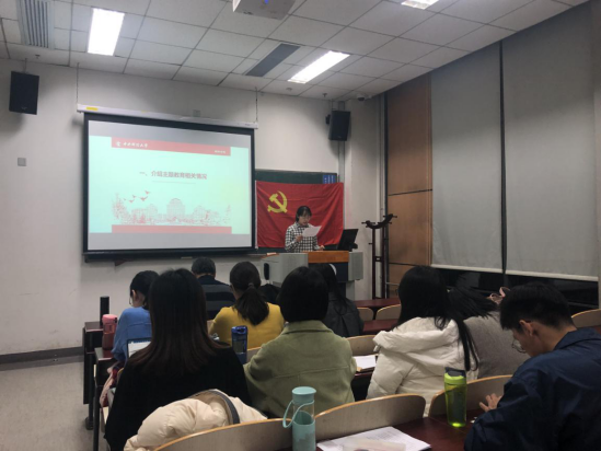 余文秀首先对前一阶段的工作作了总结。自9月主题教育启动以来,支部以深入学习贯彻习近平新时代中国特色社会主义思想为根本任务,不断增强“四个意识”,坚定“四个自信”,做到“两个维护”,真正把“初心”和“使命”融入到工作和生活的各个细节。支部结合实际情况,开展了形式多样且具有实效性的主题教育活动,例如组织观看电影《小巷管家》、开展志愿服务、党员讲微党课、党员学习心得分享等活动,将学习教育引向深入。在检视整改情况方面,党支部积极开展对照党章党规找差距工作,支部党员逐条深入地进行自我检视并制定整改措施;在支部主题教育成效方面,主题教育活动加强了支部的政治理论学习,提升了支部党员的思想政治素质。