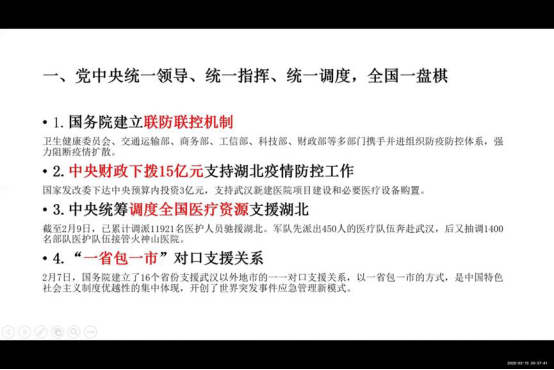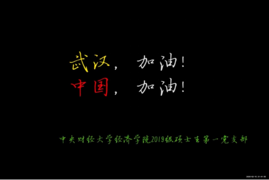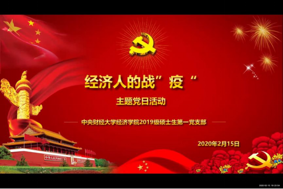 新葡萄8883官网AMG官网2019级硕士生第一党支部于2月15日开展“经济人的战‘疫’”线上主题党日活动。本次活动由党支部书记翁慧敏主持,支部全体党员、2019级硕士生积极分子、入党申请人参加。会议邀请经济史学系教工党支部伏霖老师、政治经济学系教工党支部窦宗玥老师在线参与并点评。