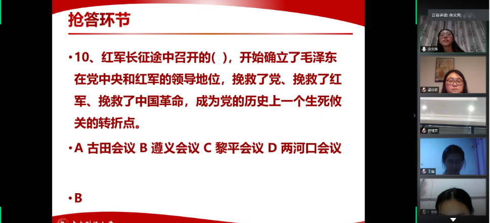 为庆祝中国共产党成立99周年、迎接七一建党节,2020年6月29日晚上,新葡萄8883官网AMG官网2018级硕士生第二党支部开展“初心不忘、献礼七一”线上主题活动。本次活动分为主题党课、红色经典配音比赛和党史知识竞答三个环节,旨在回顾中国共产党建党历程、追溯党和国家砥砺奋进之路、牢记共产党人的初心使命。本次活动由党支部书记余文秀主持,党支部全体党员、预备党员和发展对象参与了此次活动。