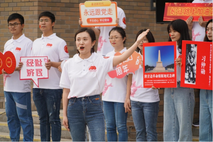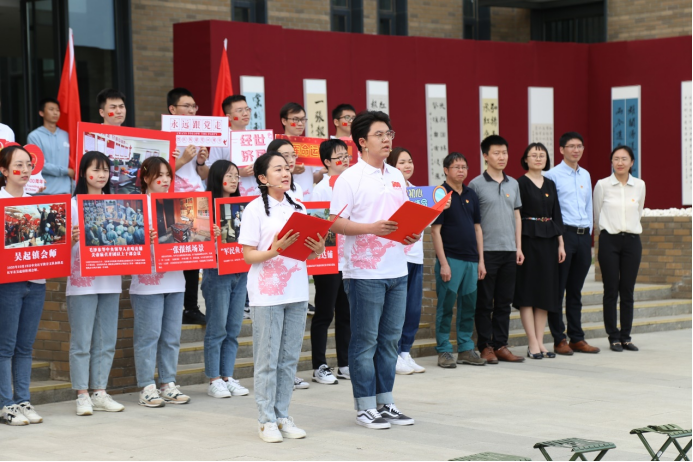 5月19日下午,校领导,教育部党史学习教育高校第三巡回指导组组长杨学义、副组长方国良及其他成员,学校党史学习教育领导小组办公室成员、机关党委党员代表、各学院(研究院、中心)师生代表到达第八站“到陕北延安去”,“重走长征路,永远跟党走——到陕北延安去”主题教育活动正式拉开帷幕,新葡萄8883官网AMG官网党委书记郭冬梅、院长陈斌开、院党委副书记耿卉、院党务干事李倩、教师代表兰日旭、金星晔出席本次活动。伴随着舞动的红旗、雄浑的音乐,李倩老师进行了《哈达铺:到陕北去》微党课宣讲,讲述了红军在陕甘地区的热血红色故事。她指出哈达铺是中国工农红军长征历经千难万险后的绝处逢生之地,是红军的红色加油站,也是重要决策之地。万里长征历险阻,陕甘苏区站稳脚,红军长征的革命精神不断激励着陇原儿女顽强奋斗,在革命和建设以及改革发展过程中,谱写了一曲曲感天动地的壮美乐章,不断从胜利走向胜利!