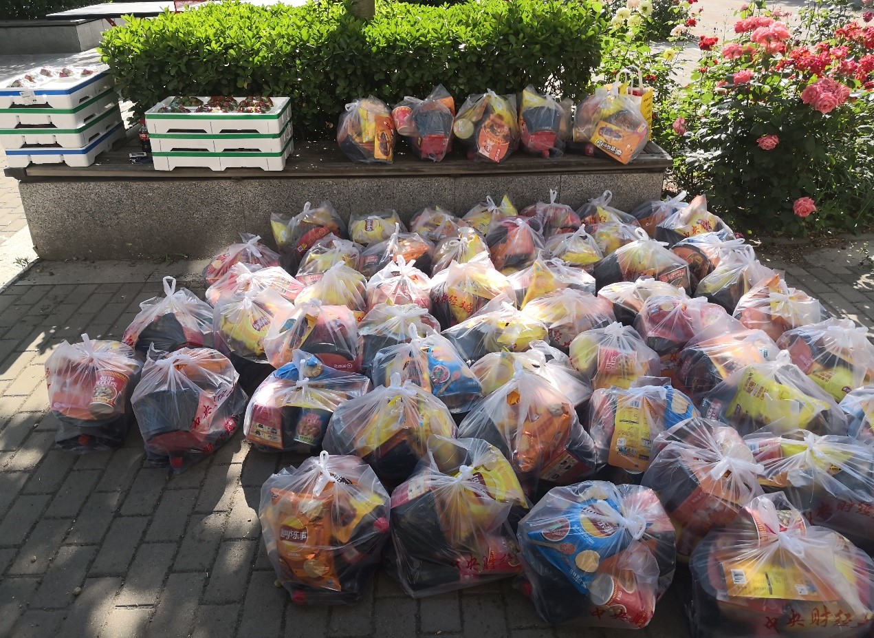 5月25日,学院给同学们送来爱心餐包,饭盒、汤碗、餐具、洗洁精、洗碗布一应俱全,让同学们惊喜万分。