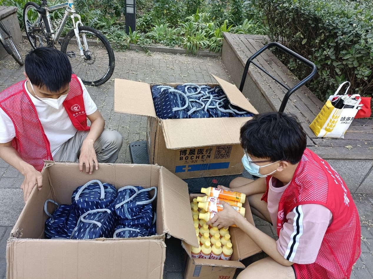5月26日,为方便毕业整理物品和行李打包,学院驻校教师和党员志愿者为毕业年级同学发放打包所需纸箱和袋子。