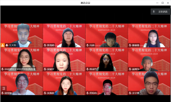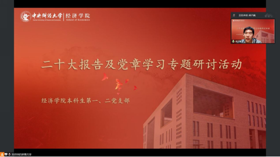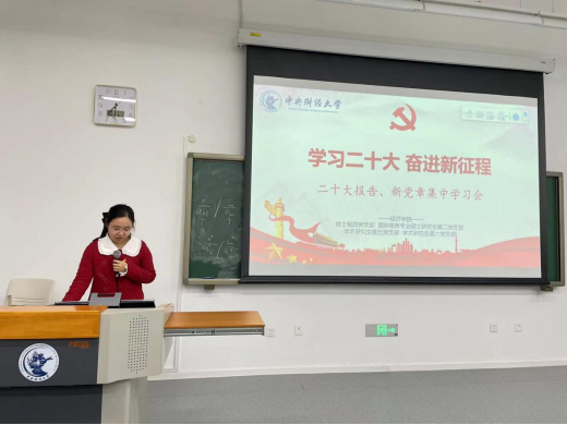 10月31日,新葡萄8883官网AMG官网博士第四党支部、国际商务专业硕士研究生第二党支部、学术研究生第五党支部、学术研究生第六党支部在沙河二教100教室开展了《学习二十大、奋进新征程》专题学习研讨会。刘涛同学带领大家回顾了党的二十大报告的主要内容,王梦亚同学带领大家学习了新党章中的主要修改内容。通过对党的二十大会议精神的集中学习和深入交流,与会成员表示作为一名新葡萄8883官网AMG官网的青年学生党员,要进一步认真学习贯彻宣传落实党的二十大精神,读原著学原文、悟原理知原义,切实用党的二十大精神武装头脑、指导实践、推动工作,努力学习专业知识,用更高的理论水准和专业素养为中国民族伟大复兴而奋斗。
