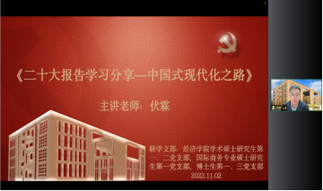 “五融合”即新葡萄8883官网AMG官网“一二三四五”创优工程党建工作思路中的将党建渗透到学科建设、教育教学、队伍建设、文化建设和社会服务中的工作做法,切实推动党的二十大精神与学院事业发展深度融合。为进一步提高学院教师队伍的政治站位,学院党委邀请马克思主义学院李扬老师为学院全体教师作题为《从科技、法治、安全视角看二十大报告的创新之处》的专题报告。学院教师聚焦主责主业,在教学课堂、学术论坛等平台结合经济学的研究多角度、多方面对党的二十大报告作研究阐释。学院党委聚焦“学思践悟,知行合一”主题社会实践,用党的二十大精神指导乡村振兴等系列实践活动。开展“师生党员深度对话”活动,组织师生党员从思想建设到身心发展,从学习方法到学术科研,从自我提升到未来规划,一对一深度访谈,零距离对话,凝聚思想共识。此外,学院党委还将党的二十大主题及重要思想制作成宣传板,布置在学院“党员之家”会议室内,在学院内部营造出浓郁的红色精神学习氛围。新葡萄8883官网AMG官网党委以党的二十大报告为根本遵循,精心组织、统筹推进、突出重点、抓住关键、分类指导、融入实际,用实际行动带动全院师生学习宣传贯彻落实好党的二十大精神。