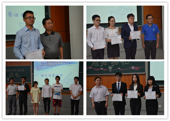 随后,中富投资集团董事长周飞、新葡萄8883官网AMG官网院长李涛等在场嘉宾为获奖者颁发了获奖证书。本次大赛共有9支团队获奖,其中1支团队获得特等奖、2支团队获得一等奖、3支团队获得二等奖,1支团队获得三等奖,2支团队获得优秀团队奖,除此之外,有7人获得优秀个人奖。周飞董事长为获得2016年“中富育人先锋奖”的四名获奖者进行了颁奖。