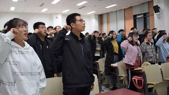 在此之后,由第一团副王骏驰领誓,全体学生会成员进行了庄严的宣誓。最后,抽奖环节中由李倩老师抽出了学生会的七位锦鲤成员。