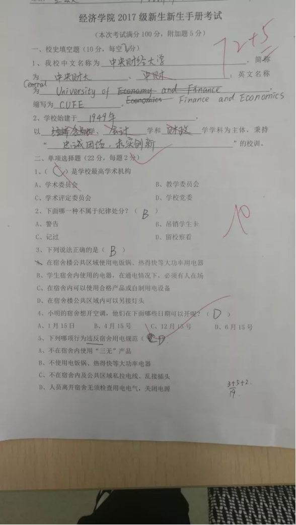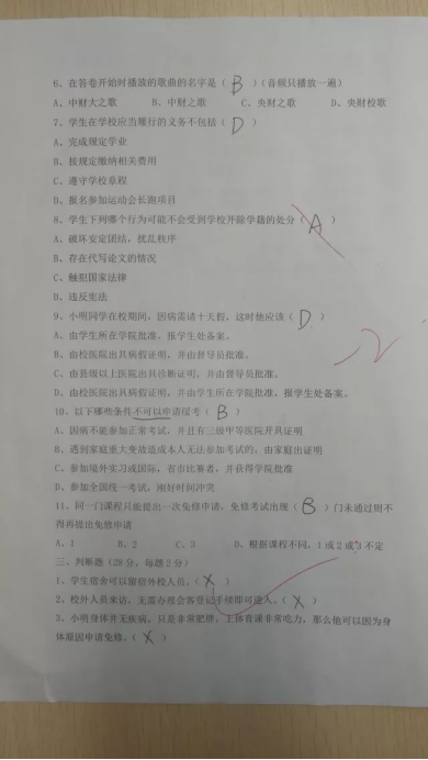 俗话说,无规矩不成方圆,新生进入学校学习,就要遵守学校的校纪校规。在新生阶段认真进行校纪校规教育,对于未来学生管理大有裨益。自新生入学后,学院领导高度重视,要求辅导员深入开展校纪校规教育,做到学习规则、遵守规则。辅导员根据教育部41号令、《新葡萄8883官网AMG官网学生管理规定》《学生手册》等文件,举办了新葡萄8883官网AMG官网17级新生学生管理知识竞赛,以试卷的形式,将上述文件中的知识要点杂糅到试题当中,以客观题、名词解释、简答题、论述题、计算题五种题型编制试卷。通过考试,既考察了学生对于相关管理办法的熟知程度,也考察了掌握和应用管理办法的水平。
