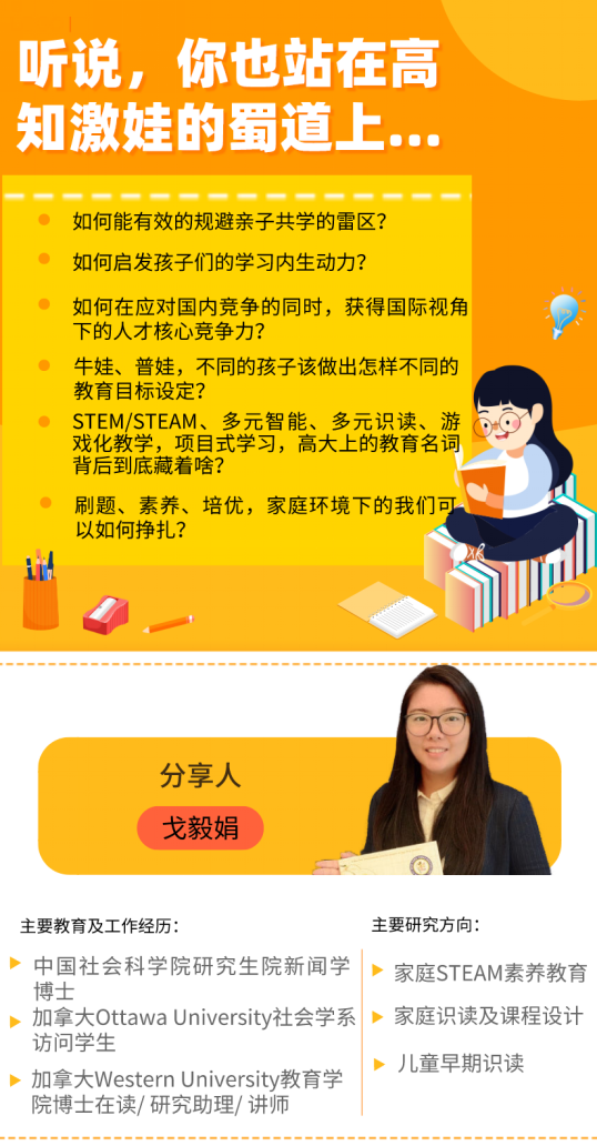 戈毅娟博士,获得中国社会科学院新闻学博士学位,目前在加拿大西安大略大学攻读教育学博士学位。戈毅娟博士作为新葡萄官网教师家属,在此次分享中主要探讨了当前高知家庭亲子教育中所呈现出的父母焦虑问题。分析了其核心来源,形成原因,以及可行性的解决方案。