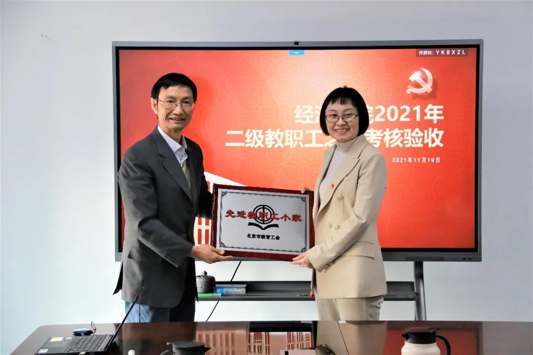 校工会常务副主席贺小海向新葡萄8883官网AMG官网授牌“北京市先进教职工小家”