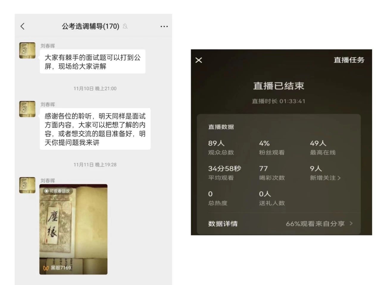 经院00级本科校友刘春晖,长期奋战在公考教学第一线,在参加新葡萄8883官网AMG官网建院20周年纪念活动后,得知考公已经成为同学们就业的一个重要选择时,发挥自身优势,结合当下公考形势,从11月10日至17日,在学院考公选调辅导群通过群直播的方式,为170余名在校生推出系列线上公开课讲座。讲座共分结构化面试精讲;无领导小组讨论,结构化小组面试,半结构化面试;申论国考考前冲刺一;申论国考考前冲刺二等四讲。