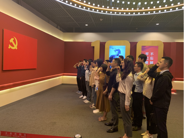 期间支部参观了1872年德文版和1888年英文版的《共产党宣言》《新青年》《少年中国》等新文化运动和五四运动时期的重要刊物,开国大典使用过的礼炮等珍贵藏品。在参观过程中,全体支部党员认真聆听解说员的讲解,仔细观看每一件文物和文字视频资料,置身于当时的历史时空环境中,重温中国共产党从建党到建立新中国的艰辛革命历程和伟大辉煌成就。大家一致表示将继续深入贯彻党中央“学史明理、学史增信、学史崇德、学史力行”的号召,不断增强“四个意识”,坚定“四个自信”,做到“两个维护”,以奋进精神迎接新征程,以责任担当助力科技创新发展。最后,在庄严的党旗面前所有党员重温入党誓词的仪式,既是对建党100周年的隆重纪念,也是对所有人的一次深刻的党性教育。