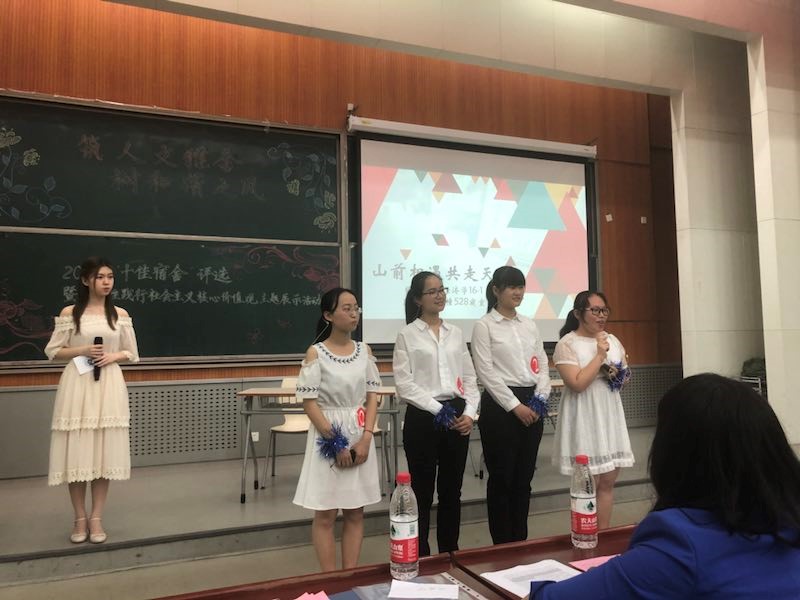 2018年本科生宿舍评优工作从五月初启动至五月底正式落下帷幕。经过本科生申请、学院推荐、学校材料复核、实地走访、现场评审展示等环节,新葡萄官网本科16级528宿舍入围了最终的现场评审展示环节。在现场展示中,528宿舍从学习、工作、社会活动各方面进行了阐述,得到了现场同学热烈的掌声与评委老师的肯定,最终获得了校级“优秀宿舍”的荣誉。同时新葡萄官网14级203毕业生宿舍也凭借着优秀的大学学业成绩、丰富的工作经历、扎实的科研成果获得了校级“优秀毕业生宿舍”的称号。
