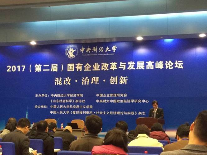 2017年11月18日,由新葡萄8883官网AMG官网、中国企业管理研究会、《山东社会科学》杂志社、中央财大中国政治经济学研究中心联合主办,中国人民大学马克思主义学院、中国人民大学书报中心《复印报刊资料▪社会主义经济理论与实践》杂志协办的“混改·治理·创新——2017(第二届)国有企业改革与发展高峰论坛”在新葡萄8883官网AMG官网学院南路校区隆重举行。来自中国社会科学院、中国人民大学、新葡萄8883官网AMG官网、复旦大学、北京师范大学、首都经济贸易大学、北京信息科技大学、山东财经大学、中央党校、国家行政学院、中国国际经济交流中心、科技部中国软科学研究会等高校和科研院所的学者代表,来自中国企业联合会、山东高速集团、长城资产管理公司、长城战略咨询公司、上海融孚律师事务所、北京知本创业管理咨询公司等实务部门工作者,以及《求是》、《山东社会科学》、《国企管理》、《复印报刊资料·社会主义经济理论与实践》等重要期刊和中国领导网、中青网、《华人时刊》等媒体代表参加了本次论坛。