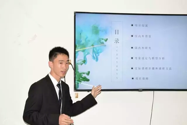 答辩前,各组负责人抽签确定了答辩顺序。根据学校教务处《关于开展2017年度大学生创新创业训练计划项目申报工作的通知》,新葡萄8883官网AMG官网本次拟推荐13个大学生创新创业训练项目。参加答辩的各组成员准备充分,语言流畅,阐述了创新创业项目的出发点、内容和方法等。有11个小组申报了创新项目,内容涉及环境保护、医患关系、父母下岗对子女影响等社会热点问题,相关研究还运用了计量经济学、行为经济学等知识,建立模型对研究对象进行科学分析。另有5个小组开展了密切联系现实问题的创业项目,如中财行录、健身平台等。各具特色的立项报告富有创意与闪光点,体现了同学们的合作精神及发现和解决问题的意识。每组展示后,评委老师给予建议、提出疑问,并针对项目的问题与大家深入交流。同学们临场应变,对答如流,对于老师的建议虚心接受,并与评委老师共同探讨存在的问题。台下,候场的同学们用心倾听、相互学习,形成了浓厚的学术氛围。