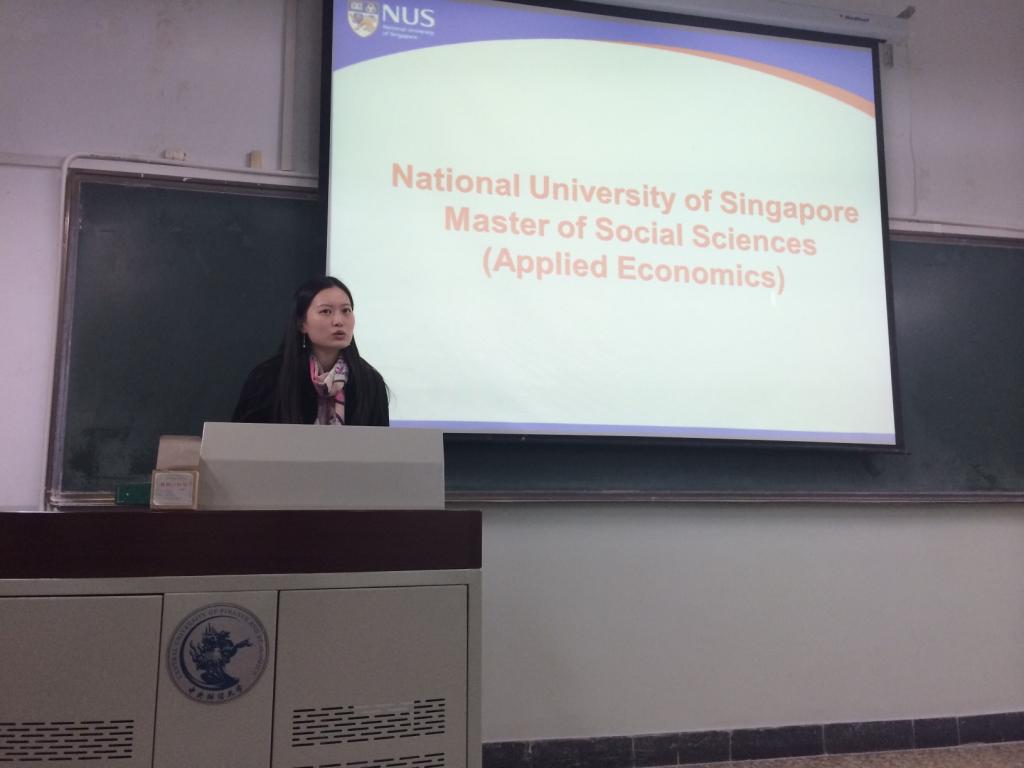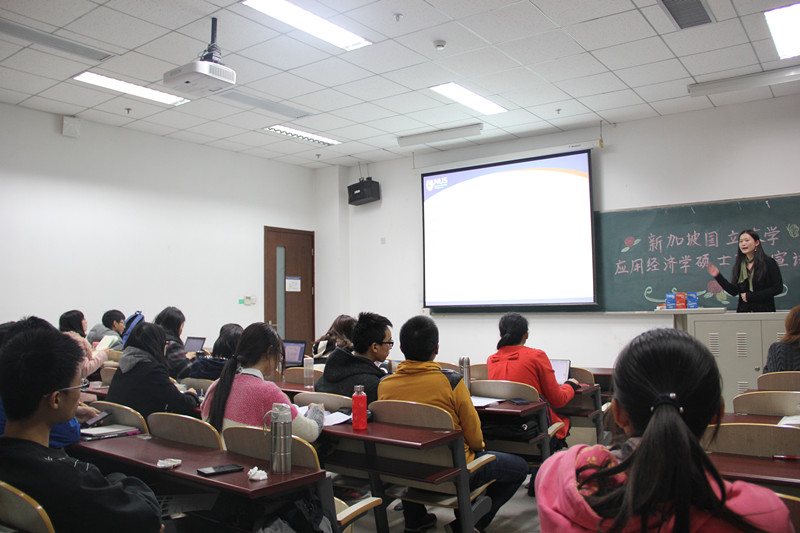 10月26日、27日,为了促进新葡萄官网及我校毕业生的出国深造工作,提升出国深造的平台与水平,应新葡萄官网邀请,新加坡国立大学应用经济学硕士项目招生负责人韦青老师来到我校进行项目宣讲。