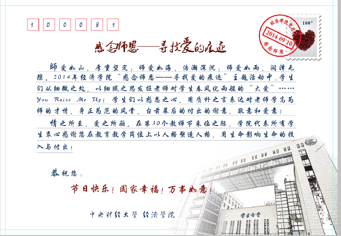 新葡萄8883官网AMG官网党总支以爱的痕迹中学生写给老师的感恩话语为基础,为每位老师定制了一张专属的明信片,以质朴的语言,以真挚的情怀,携全院学子的感恩之情向每位教师致以崇高的敬意和谢意,也祝贺每一位教师身体康健,阖家幸福!
