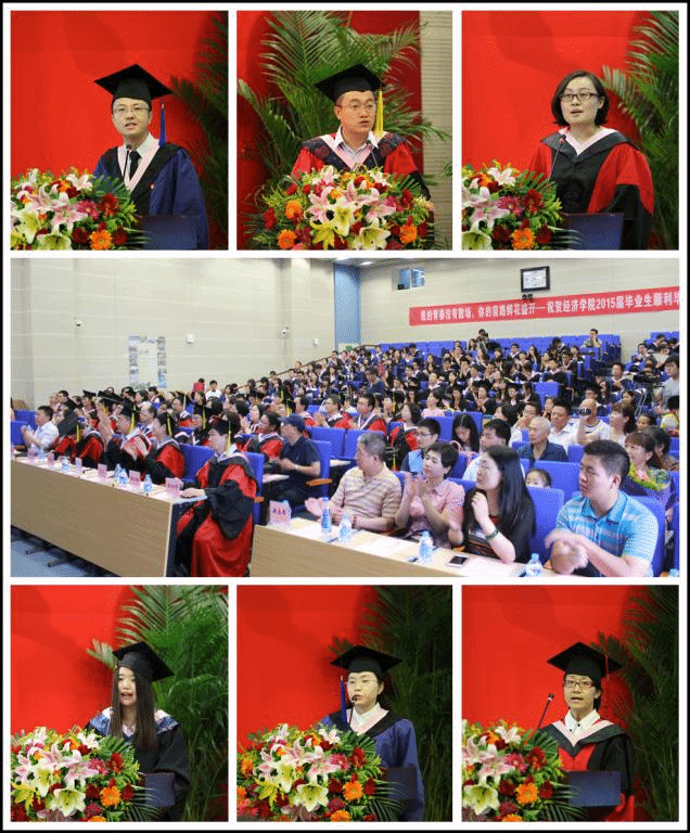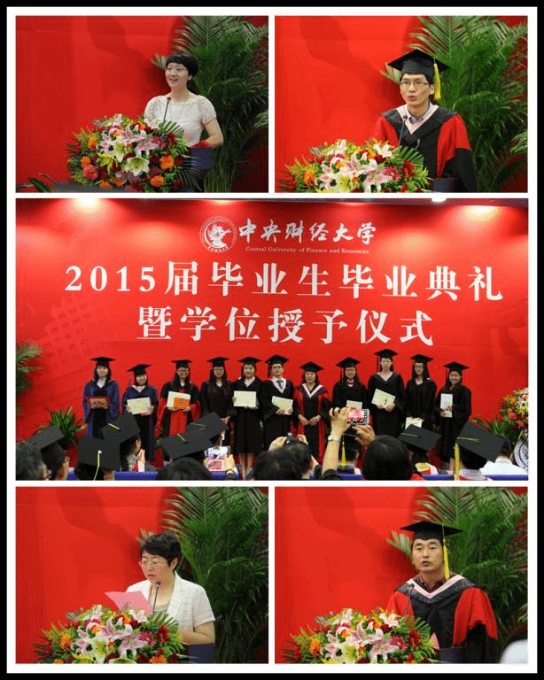 在接下来的毕业感言环节,新葡萄8883官网AMG官网2015届本科生,即将赴瑞典斯德哥尔摩大学深造的张静一同学表达了她与中财、与经院一路走来的感情,“真实的新葡萄8883官网AMG官网是什么样子?远比我们任何人想象的丰富,远比我们任何人想象的包容,也远比我们任何人想象的精彩”;15届的硕士毕业生,在新葡萄8883官网AMG官网求学六年的朱俊兵则在赴柏林自由大学读博前夕,用平实的语言叙述了“六年磨一剑”的心路历程,表达了对经院师长的无尽热爱;而本届的博士毕业生,来自国民经济学专业的冉美丽,则风趣地把博士阶段的求学研究比作“先作茧自缚,再化茧成蝶”的过程。师长寄语中,曾任新葡萄8883官网AMG官网09、10、11、12级辅导员、团总支书记,今年从财政学专业硕士毕业的麻富根从自己独特的角度,叙述了自己眼中的经院,自己眼中的人才培养,自己眼中的人生选择,表达了对经院师生真挚的情感;新葡萄8883官网AMG官网郭冬梅老师表达了对毕业生殷切的希望,她勉励毕业生摆正工作和生活的心态,任何问题总有解决的办法,“即使没有解析解,也会有数值解”。