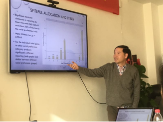 2018年12月12日,新葡萄8883官网AMG官网-社心学院行为经济学系列论坛2018秋季学期第二讲在学院南路校区主教1305顺利举行。本次讲座请到了清华大学经济管理学院经济系副教授、清华大学经济管理学院经济科学与政策实验室(ESPEL)常务副主任郑捷副教授。郑老师向与会者介绍了其最新实验经济学工作论文“Lying forefficiencyor fairness”。讲座中,郑捷老师从撒谎的动机入手,介绍了最新相关实验研究文献。之后,介绍其实验设计,讨论不同情形下的独裁者博弈行为,以探究是否公平和效率偏好者在博弈内和博弈外会有不同的撒谎几率。实验结果显示,在撒谎不涉及自身利益的条件下会导致更少的倾向公平的撒谎。实验结果对于社会福利政策方面有很好的实际意义。