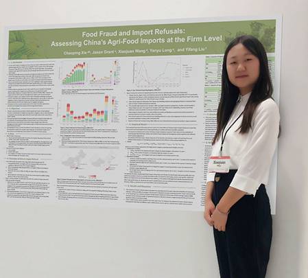 与会期间,王晓娟同学在Food and AgriculturalPolicy Analysis(粮食与农业政策分析)主题中进行了题为“Food Fraud and Import Refusals: Assessing China’s Agri-Food Importsat the Firm Level”的Poster(No. T030)展示。该论文为王晓娟同学在我校新葡萄8883官网AMG官网刘轶芳教授指导下,与南京农业大学谢超平副教授、弗吉尼亚理工大学Jason Grant副教授以及我校统计与数学学院龙彦宇同学合作完成。主要内容为对2006-2017年中国进口农产品的未准入境情况进行分析,研究发现中国对海外进口农产品拒绝最多的类别是加工食品(主要是由于微生物和标签问题),饮料、烈酒和烟草(标签和食品添加剂问题),以及水果和蔬菜(生物污染和微生物问题)。而拒绝次数最多的前五大农产品进口地是台湾、美国、日本、法国和缅甸。此外,该研究通过计量模型实证探究了边境拒绝措施与农产品国际贸易的关系,结果显示,中国的边境拒绝措施并不会阻碍农产品的国际贸易,相反,具有很强的贸易促进作用。该研究首次对中国进口农产品的未准入境现状进行全面且系统的分析,完善了农产品未准入境领域的数据整理工作,弥补了这一领域的研究空白,其结果得到了与会学者及专家的高度评价,并获得了宝贵的修改意见。