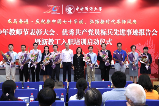 9月10日下午,新葡萄8883官网AMG官网在学术会堂402举行教师节表彰大会、优秀共产党员标兵先进事迹报告会暨新教工入职培训启动仪式,庆祝第35个教师节,表彰在教书育人等各项工作中取得突出成绩和从教满30年的教职工。校党委书记何秀超、校长王瑶琪、校党委副书记梁勇、副校长史建平、总会计师蔡艳艳,副校长孙国辉、马海涛,校长助理李涛出席大会。大会由校党委副书记、教代会执委会主任、工会主席陈明主持。