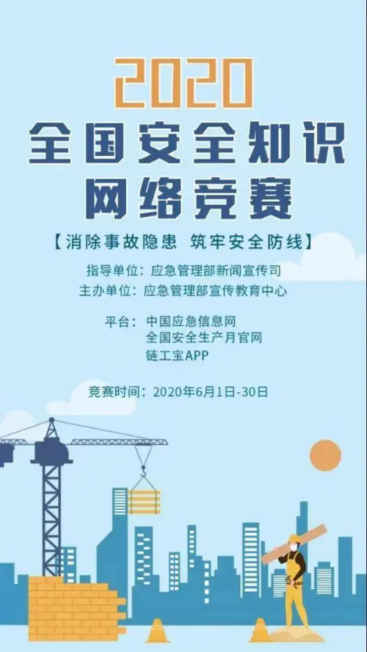 6月1日至30日,面向社会公众开展全国安全知识网络竞赛,答题学知识之余,更有丰厚奖品等着您!6月让我们开启安全挑战之旅,全民学安全、懂安全、会安全,争做安全明白人!