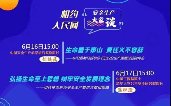 6月16日起,与知名专家、企业安全生产负责人和一线技术工人相约人民网,围绕安全生产责任落实、隐患排查、风险管控、应急处置等内容,学习安全生产知识技能,交流心得体会。6月16日15:00,中国安全生产科学研究院原院长刘铁民,讲授学习贯彻习近平总书记关于安全生产重要论述体会;6月17日15:00,中国工程院院士、清华大学公共安全研究院院长范维澄,讲授科技创新保障安全生产;其他讲授内容陆续推出。