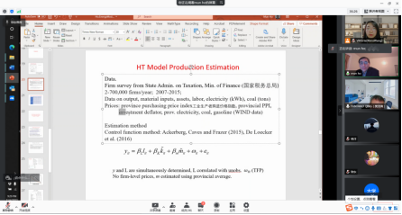 在整个线上学术讲座交流环节,参会师生就价格弹性的估计、生产函数的估计、碳交易所等问题进行了提问,Mun Sing Ho博士对提出的问题进行了耐心解答。整个线上学术讲座气氛活跃,参与的师生表示受益匪浅。