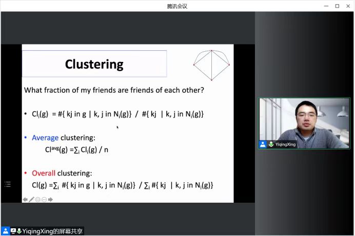2022年3月至4月,约翰霍普金斯大学经济学助教授、Stanford经济学博士邢亦青受新葡萄8883官网AMG官网经济学拔尖学术培养基地邀请,以“社会与经济网络”为题开展系列讲座,会议由副院长赵文哲教授主持。新葡萄8883官网AMG官网18级基地班和19级基地班全体同学共同在线参与学习。