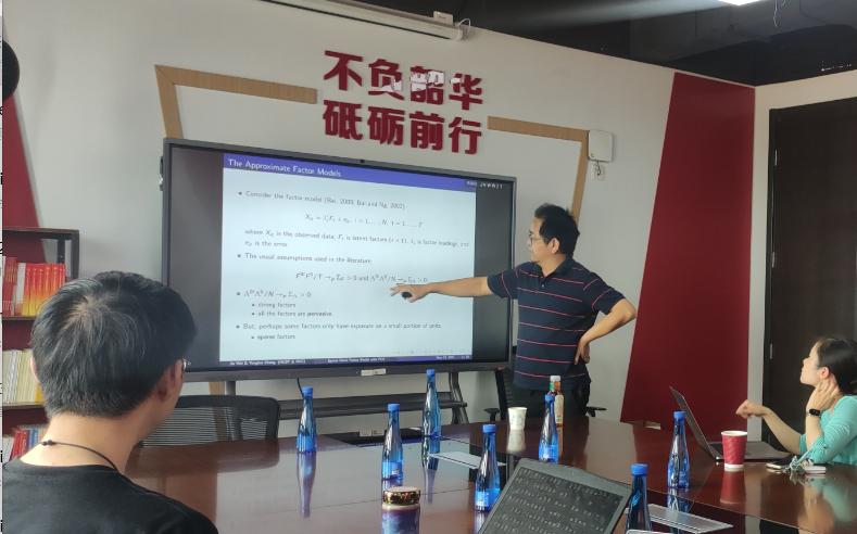 讲座伊始,章永辉老师简要描述了本次讲座的主要问题:主成分分析在稀疏弱因子模型中保持稀疏性吗?章老师基于文献对目前最新的研究成果进行了详细的描述,即许多实证研究结果支持因子负载稀疏的弱因子的存在。其中局部因子仅对某些特定的横截面组具有非零因子负载。例如,石油供应的冲击可能只影响工业生产部门,而不会影响服务业。在实证资产定价中,预计由规模或价值因素构成的投资组合会受到这些因素的影响,但由动量因素构成的投资组合可能不受这些因素的影响。