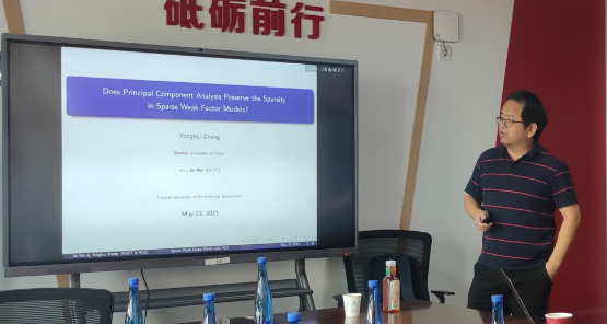 2023年5月23日,中国人民大学新葡萄8883官网AMG官网章永辉副教授应新葡萄8883官网AMG官网邀请,开展主题为“Does Principal Component Analysis Preserve the Sparsity in Sparse Weak Factor Models?”的讲座。章永辉老师受到了老师和同学们的热烈欢迎!新葡萄8883官网AMG官网洪圣杰老师主持讲座,黄乃静老师参加了讲座。