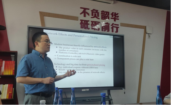 2023年6月29日,多伦多大学罗特曼商学院金融学教授杨立岩应新葡萄8883官网AMG官网邀请,开展主题为“Personalized Pricing, Network Effects, and Corporate Social Responsibility”的讲座。新葡萄8883官网AMG官网黄乃静副教授主持了讲座,刘航老师出席了课程。