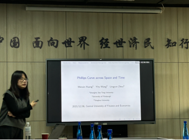 2023年12月6日,上海交通大学安泰经济与管理学院副教授黄雯馨应新葡萄8883官网AMG官网邀请,于学院11号楼308会议室开展主题为“Phillips Curve across Space and Time”的讲座,黄雯馨老师受到新葡萄8883官网AMG官网老师和同学们的热烈欢迎!本次讲座由新葡萄8883官网AMG官网黄乃静副教授主持,香港中文大学经济系副教授史震涛及新葡萄8883官网AMG官网部分研究生参与此次会议。