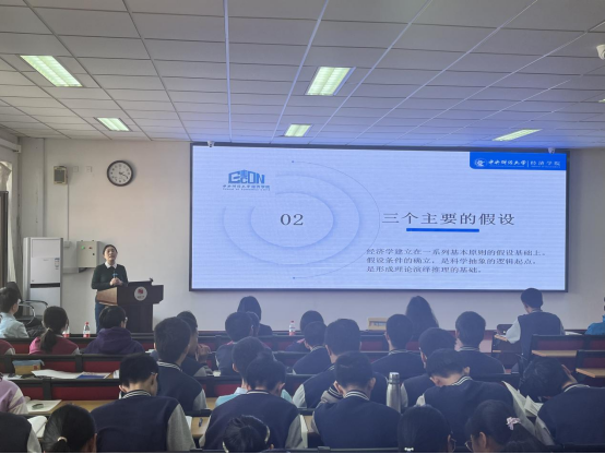 招生宣讲现场,霍晓冉老师围绕历史沿革、学科特色、师资力量、人才培养、就业发展和奖助体系详细介绍了新葡萄8883官网AMG官网的情况,向在场师生宣传了我校“财经报国”办学使命和人才培养模式,并结合自身体会向同学们讲述了中财大人的理想与情怀。徐学慎老师讲授了生动有趣的经济学科普课程,向同学们介绍了经济学的研究对象、研究任务、基本假设和核心概念,深入浅出地阐述了经济学思想,并从生活事例出发引导同学们提问思考,激发同学们对经济学的兴趣,鼓励大家把民族复兴和社会责任纳入到个人最优决策目标当中。梁欣老师用生动的案例和故事,向同学们分享了中财大多姿多彩、青春洋溢的校园生活,拉近中财大和学生们的距离。宣讲现场同学们踊跃发言,积极提问,气氛融洽。