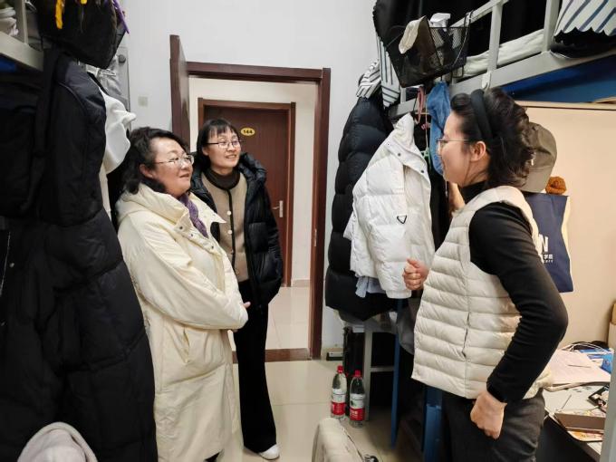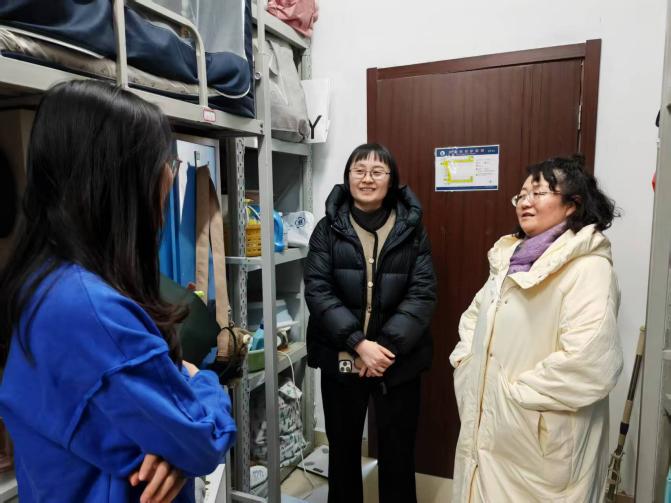 走访过程中,老师们代表学院向同学们送上了温馨的节日祝福,详细询问了大家的学习近况和寒假规划,并着重强调,寒假期间安全意识不可松懈,要时刻保持警惕,注意人身和财产安全,合理安排假期生活。对于留校的同学,务必严格遵守宿舍管理制度,尤其要高度重视消防安全,离开宿舍时仔细检查电器设备是否断电,杜绝安全隐患。