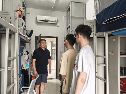 走访期间,老师们与同学们亲切交流,详细询问了大家的学习进展和暑假规划,并着重强调暑假期间安全这根弦丝毫不能松懈,必须时刻保持高度警惕,切实保障自身的人身安全和财产安全,同时要科学合理安排假期生活,让假期既充实又有意义。针对夏季高温天气持续、降雨日渐增多的特点,老师们特别提醒同学们,要做好防暑降温措施,尽量避免在高温时段进行长时间户外活动;若参与涉水活动,务必提高警惕,远离危险水域,严防溺水事故的发生。对于假期留校同学,老师们更是反复叮嘱,要将消防安全和用电安全放在首位;离开宿舍前,一定仔细检查所有电器设备是否已切断电源,从源头上杜绝安全隐患,全力确保宿舍环境安全有序。在走访丁香园宿舍时,老师们详细了解了同学们在宿舍调整过程中遇到的各类困难,比如物品搬运、设施使用等方面的问题以及大家的实际需求。