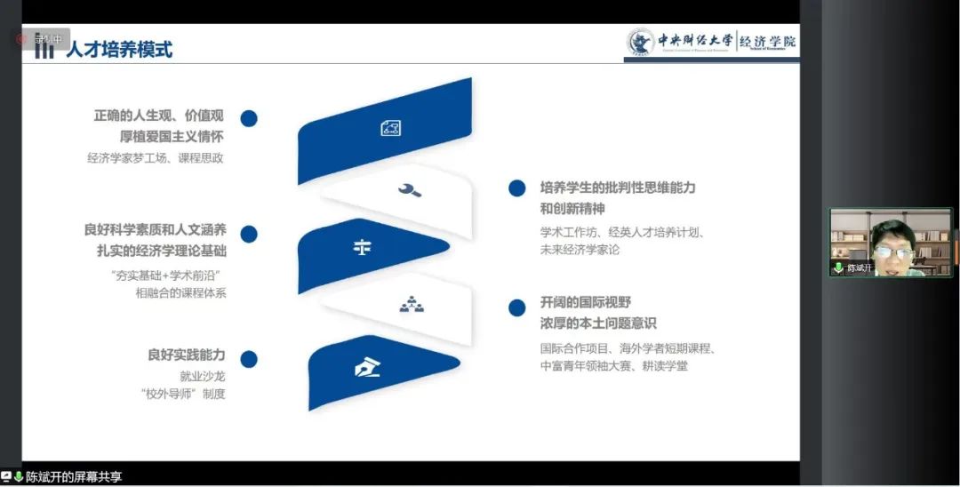 开营仪式伊始,新葡萄8883官网AMG官网院长陈斌开教授致辞。陈院长以“经世济民 梦享经院”为题,向大家介绍了经济学的基本要义、新葡萄8883官网AMG官网的基本情况和人才培养体系。他指出,经济学是财经类大学的办学之基,新葡萄8883官网AMG官网经济学教育在建校之初就已建立并开始了高水平的发展。他还向同学们详细介绍了新葡萄8883官网AMG官网的人才培养体系,鼓励大家立足中国、放眼全球,以经世济民之精神,为脚踏实地之事业。之后,青年教师赵扶扬以“格物致知,经世致用”为题,和同学们一起分享了自己学习经济学的经历和经济学研究中的经验、方法。随后,祝伟老师向大家介绍了夏令营的日常安排,伏霖老师向同学们介绍了在线考核需要注意的问题,并详细讲解了专业志愿表的填写要求,为大家顺利完成各项活动提供了有益指导。
