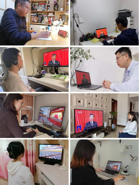 学院党委委员、党支部党员、入党积极分子代表在学院11号楼308会议室集中观看