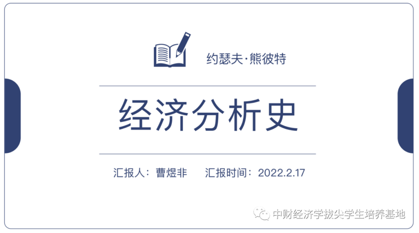 首先由曹煜非同学为我们介绍了《经济分析史》这本书。《经济分析史》一书是由著名经济学家熊彼特所著,他非常重视分析方法和分析工具,以及它们的演变过程。熊彼特在书中探讨了我们为什么要研究经济学史这一问题。他认为我们的头脑很容易从科学史的研究中得到新的灵感,而且对经济学史进行研究,能帮助了解我们人类思维的方法。除此之外,熊彼特还解答了另一问题:经济学是一门科学吗?一门科学就是任何一种知识,它是人们有意努力加以完善的对象,所以熊彼特认为回答是肯定的。在书中,熊彼特还给出经济分析工具:经济史、统计、“理论”、经济社会学、政治经济学、应用科学。研究经济学,经济史最为重要。理由是,经济学的内容,实质上是历史长河中的一个独特的过程。历史的叙述不可能是纯经济的,它必然要反应在那些不属于纯经济“制度方面的”事实。目前经济分析中所犯的错误,大多数是由于缺乏历史的经验。本书对经济分析工具历史发展和应用有着详细的解读,值得我们阅读。