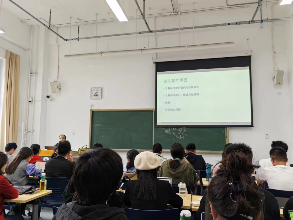 2024年10月9日,新葡萄8883官网AMG官网数字经济时代经济学拔尖学生培养基地班“科研基础训练”课程第二讲在沙河校区二教113教室成功举行,新葡萄8883官网AMG官网戴若尘副教授为同学们带来主题为“文献查找和阅读”的讲座。本次讲座是基地“未来经济学家孵化计划”的重要组成部分,吸引了基地班、新葡萄8883官网AMG官网和其他学院的众多同学前来旁听,座无虚席。