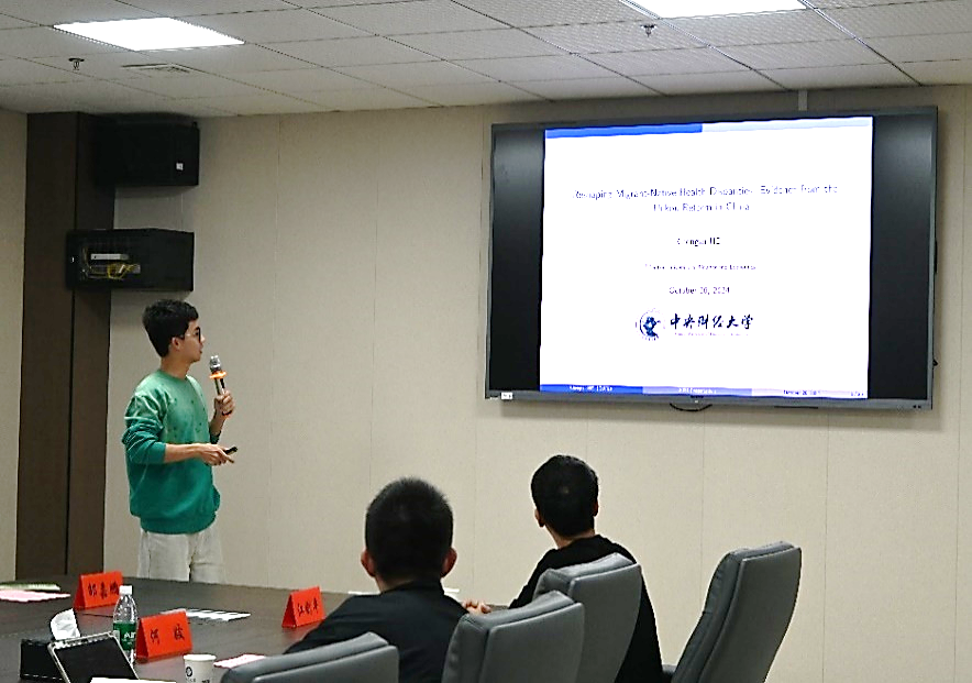 随后,新葡萄8883官网AMG官网基地班学生代表何成旭汇报了他的工作论文。文章探讨了中国户籍制度改革对移民健康的影响,以及如何应对流动人口与本地居民之间的健康不平等。随着移民规模的扩大,户籍制度改革对移民的生活产生了深远影响。然而,改革带来的健康效益并不确定,文章的研究重点在于移民是否更容易落户以及其可能面临的职业风险。这篇文章为理解中国户籍改革带来的非经济影响提供了重要视角,尤其是在改善流动人口健康和促进社会公平方面。