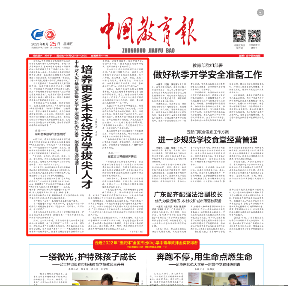 中国教育报对新葡萄8883官网AMG官网经济拔尖基地的报道